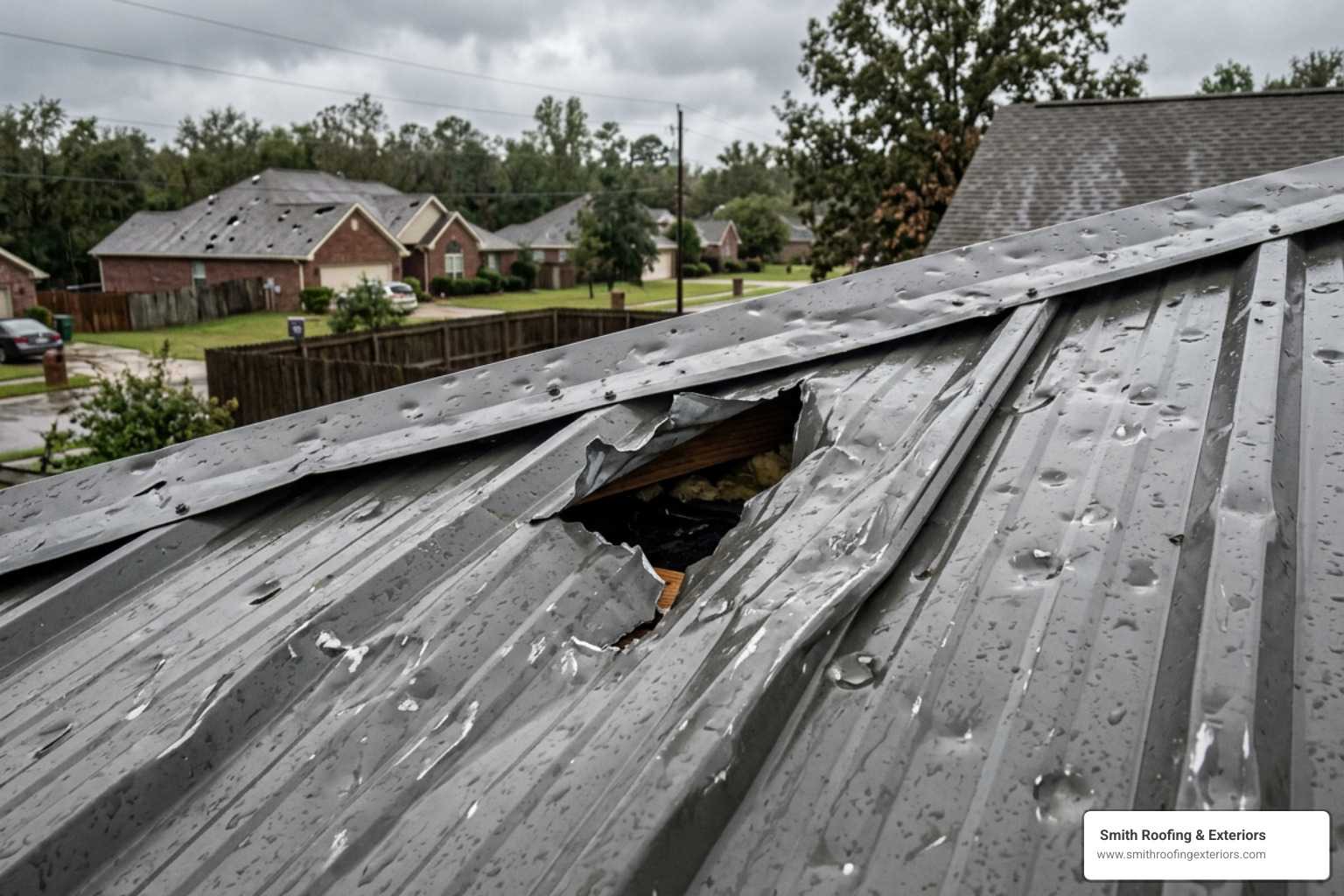 If the damage is localized—say, a tree branch fell during the storm and dented one or two sheets—a partial repair is usually fine. We can swap out individual panels and flashings to restore the roof’s integrity.
